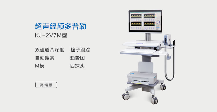 先進實用的軟件功能。一臺好的TCD儀,軟件功能設計應充分滿足臨床要求,應具備各種實用功能,如:南京科進公司生產的KJ-2V6M型TCD儀,就具有雙通道,1-2-4-8深度切換,栓子跟蹤,圖像放大,電影回放,血管自動搜索,M模,靜、動態包絡計算,自動報告設置和打印報告修改等多項功能。